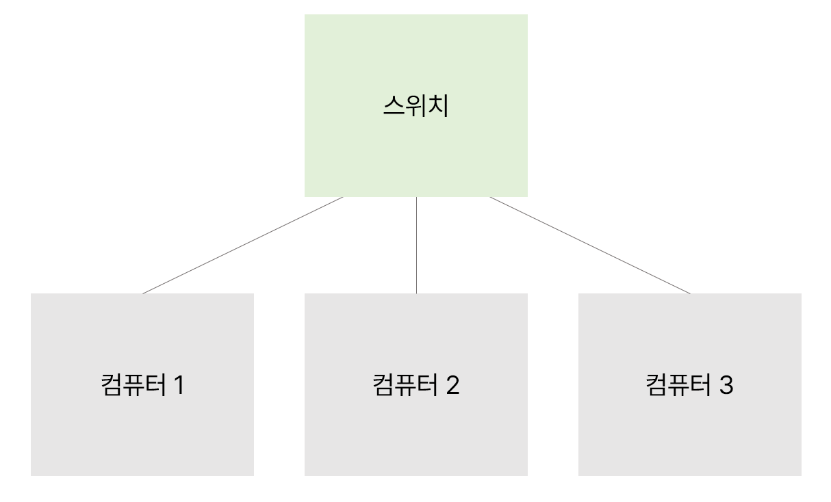 컴퓨터들은 스위치라는 것으로 연결되어 있다. 그리고 이 스위치가 앞서 말한 역할을 해준다. 1번 컴퓨터가 3번 컴퓨터에게 데이터를 전달하고 싶다면, 1번 컴퓨터는 스위치에게 3번 컴퓨터에게 데이터를 전달해달라고 한다. 그럼 스위치는 데이터를 3번 컴퓨터에게만 전달한다. 이는 각 컴퓨터에 주소가 있기 때문에 가능하다. 이 때 사용되는 컴퓨터 주소를 MAC 주소라고 한다.